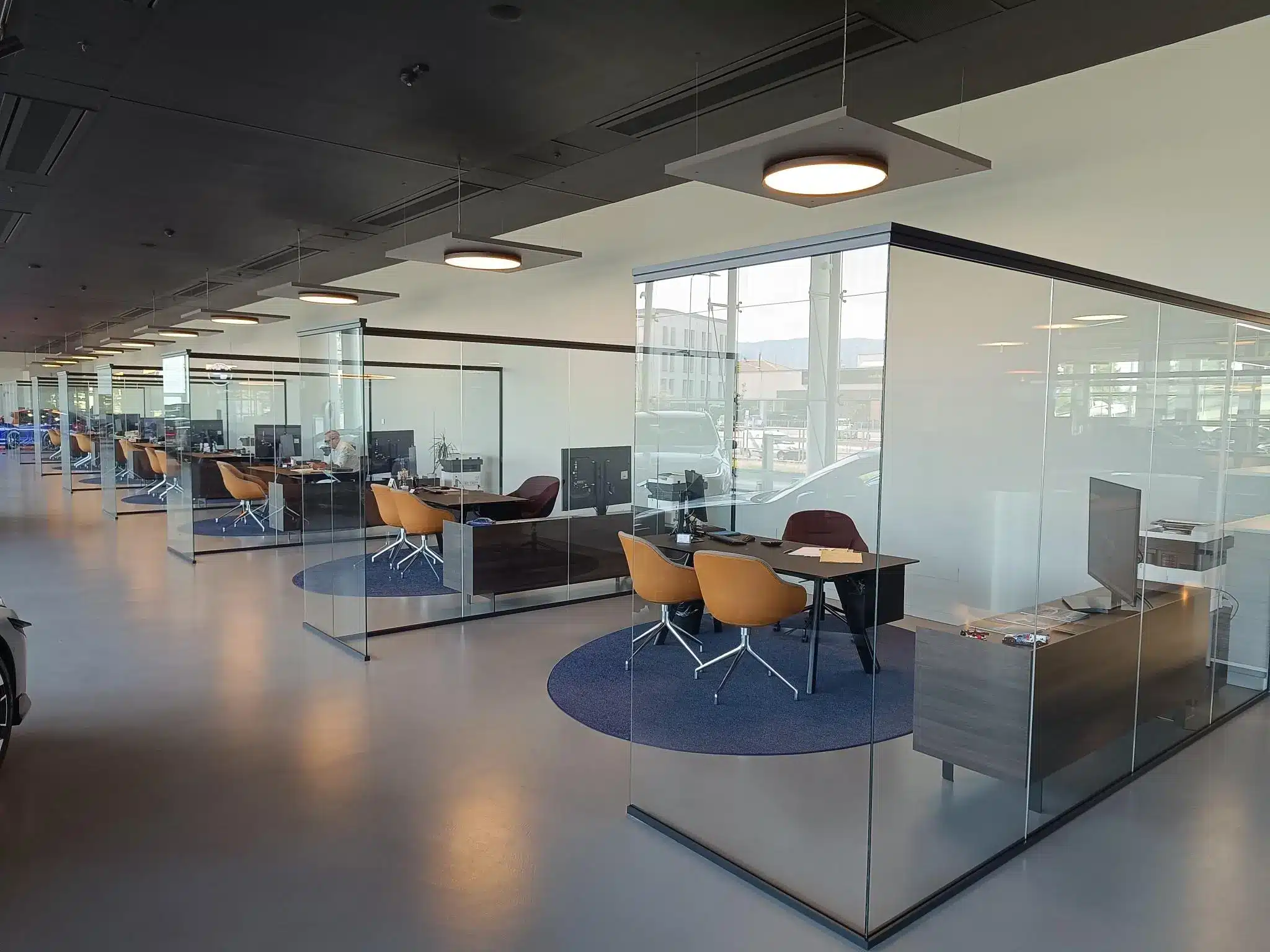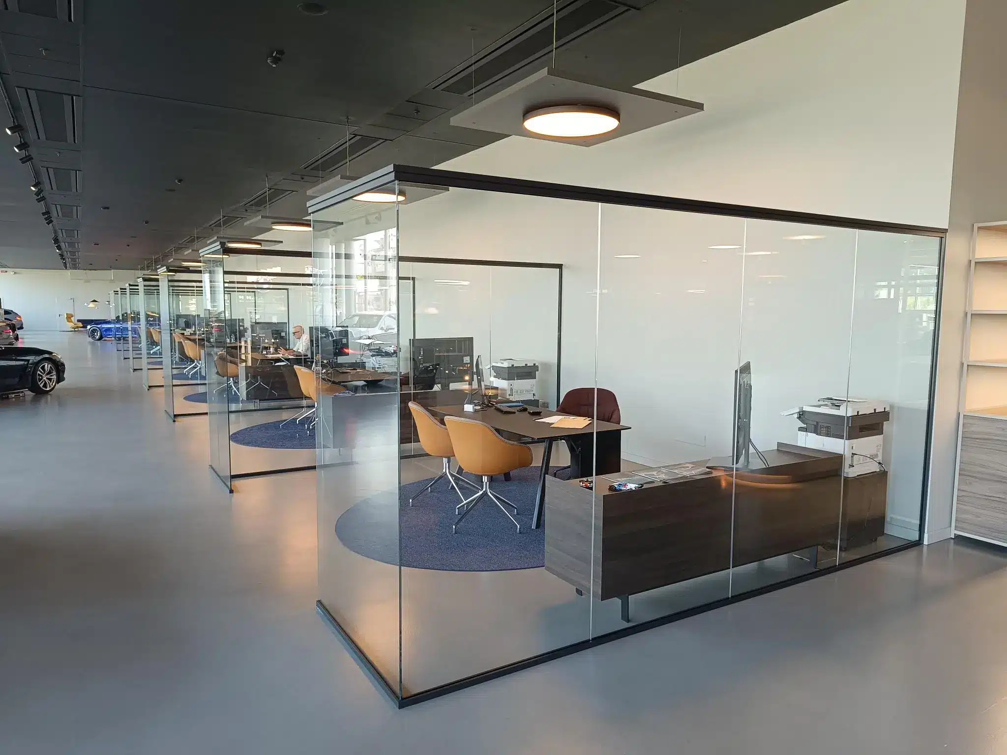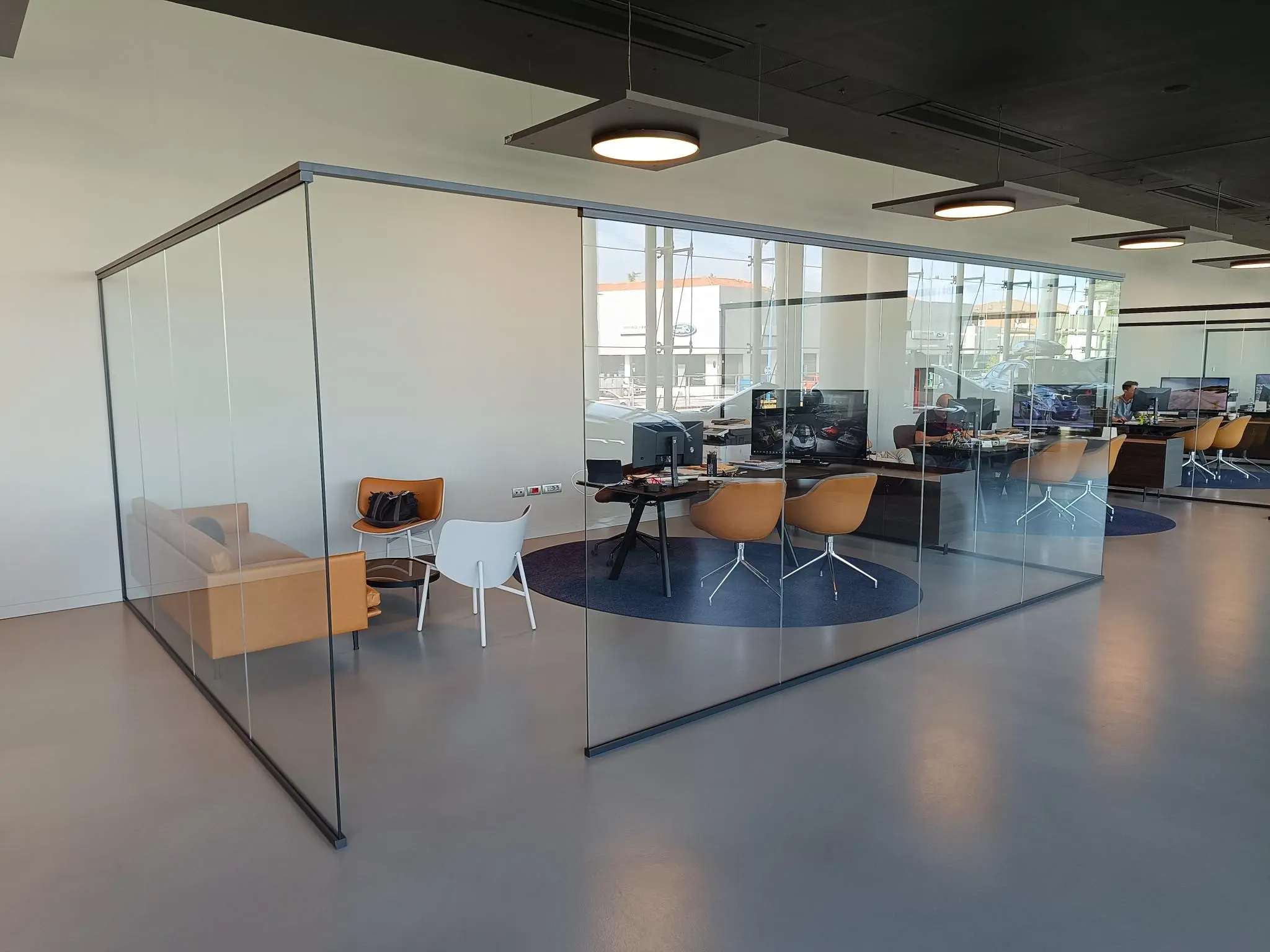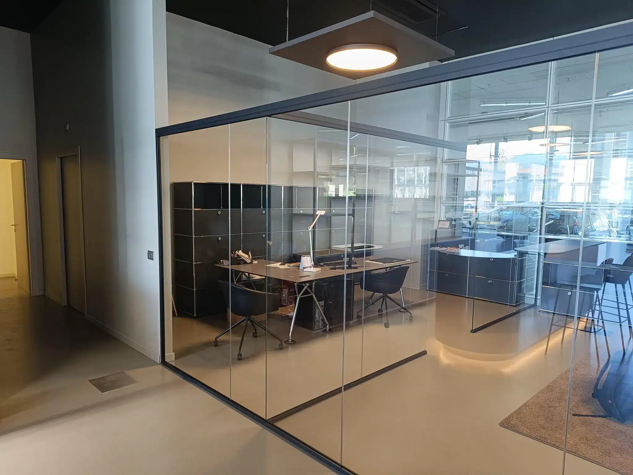 Le pareti divisorie in vetro e le porte su misura garantiscono privacy e comfort senza sacrificare la percezione di ampiezza e trasparenza: un risultato che conferma la capacità di Fipe System di fornire soluzioni integrate e un servizio realmente completo, dalla progettazione al montaggio, per ogni contesto professionale.
