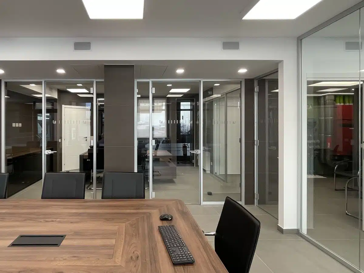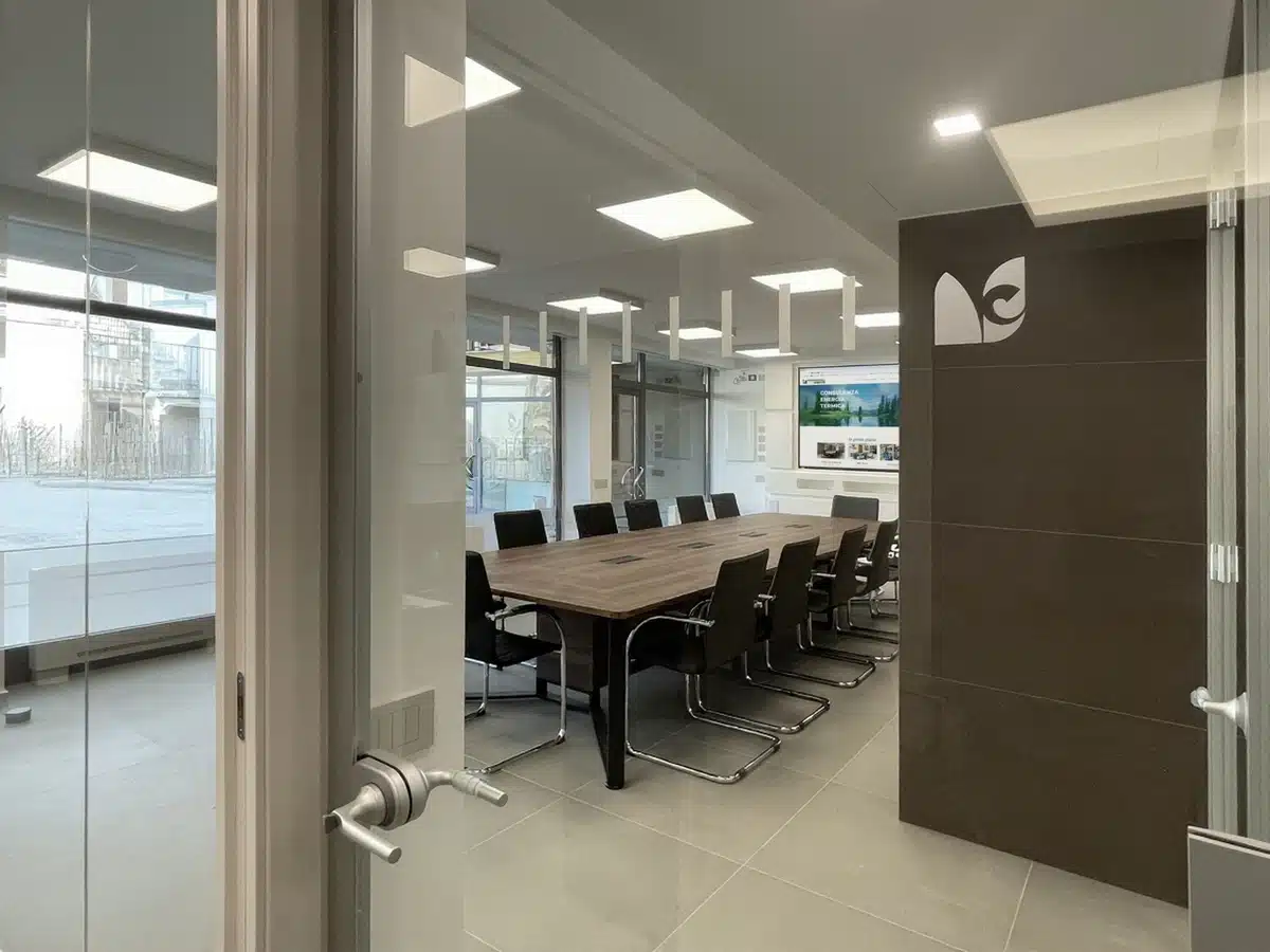 La luce naturale attraversa liberamente lo spazio, mentre il comfort acustico e la pulizia compositiva contribuiscono a rendere gli ambienti di lavoro più efficienti, accoglienti e rappresentativi. Le pareti vetrate 36G50 e le porte tutto-vetro danno forma a un progetto che interpreta in modo equilibrato esigenze tecniche, qualità estetica e benessere quotidiano.