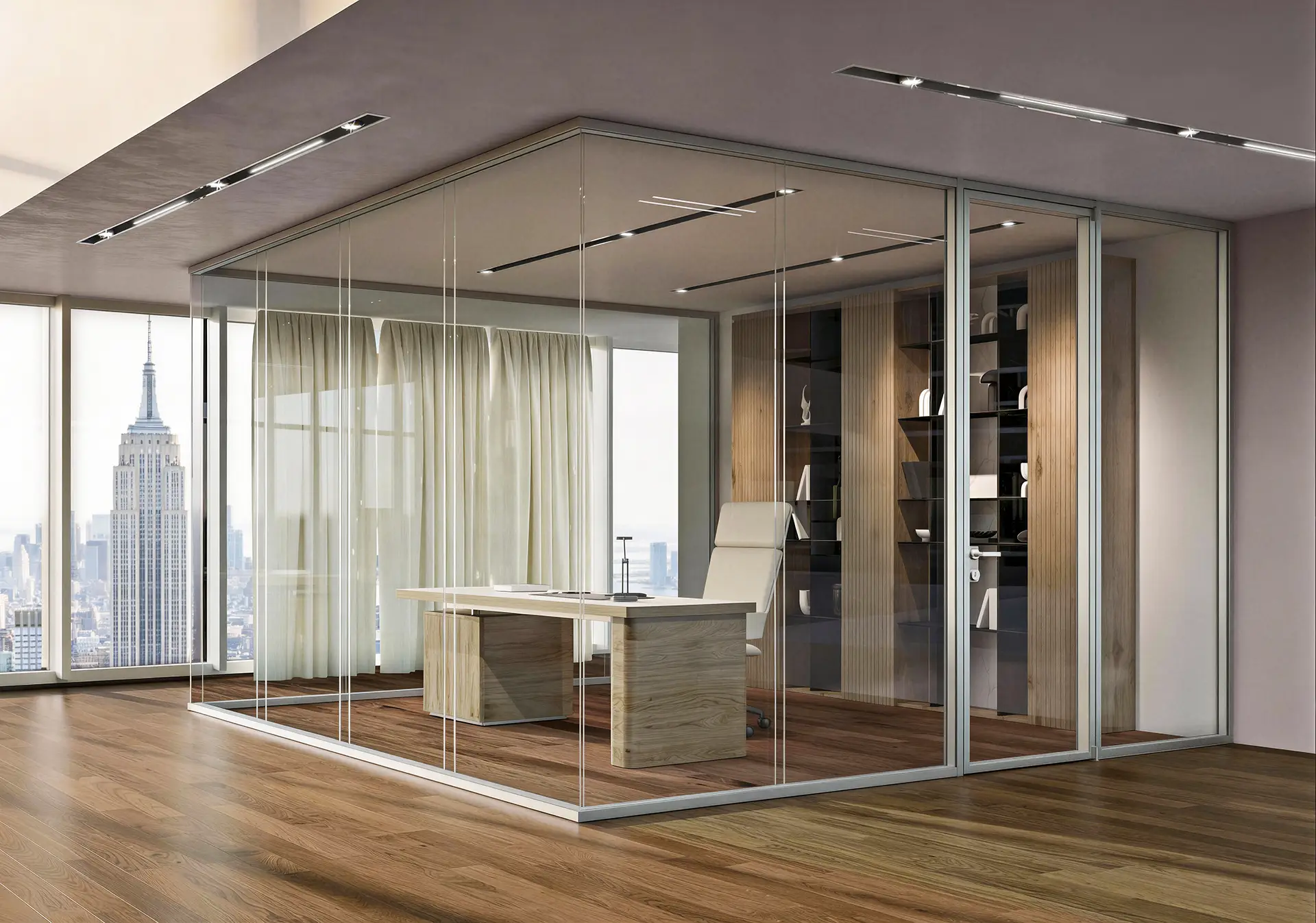 La nuova parete divisoria in doppio vetro è completamente compatibile con le altre serie del catalogo Fipe System, così da realizzare configurazioni coerenti e personalizzate. L’integrazione di materiali, optional e finiture su misura garantisce un risultato esteticamente armonico e tecnicamente performante, in continuità con l’immagine aziendale del cliente e con la filosofia progettuale che da sempre contraddistingue il nostro marchio.