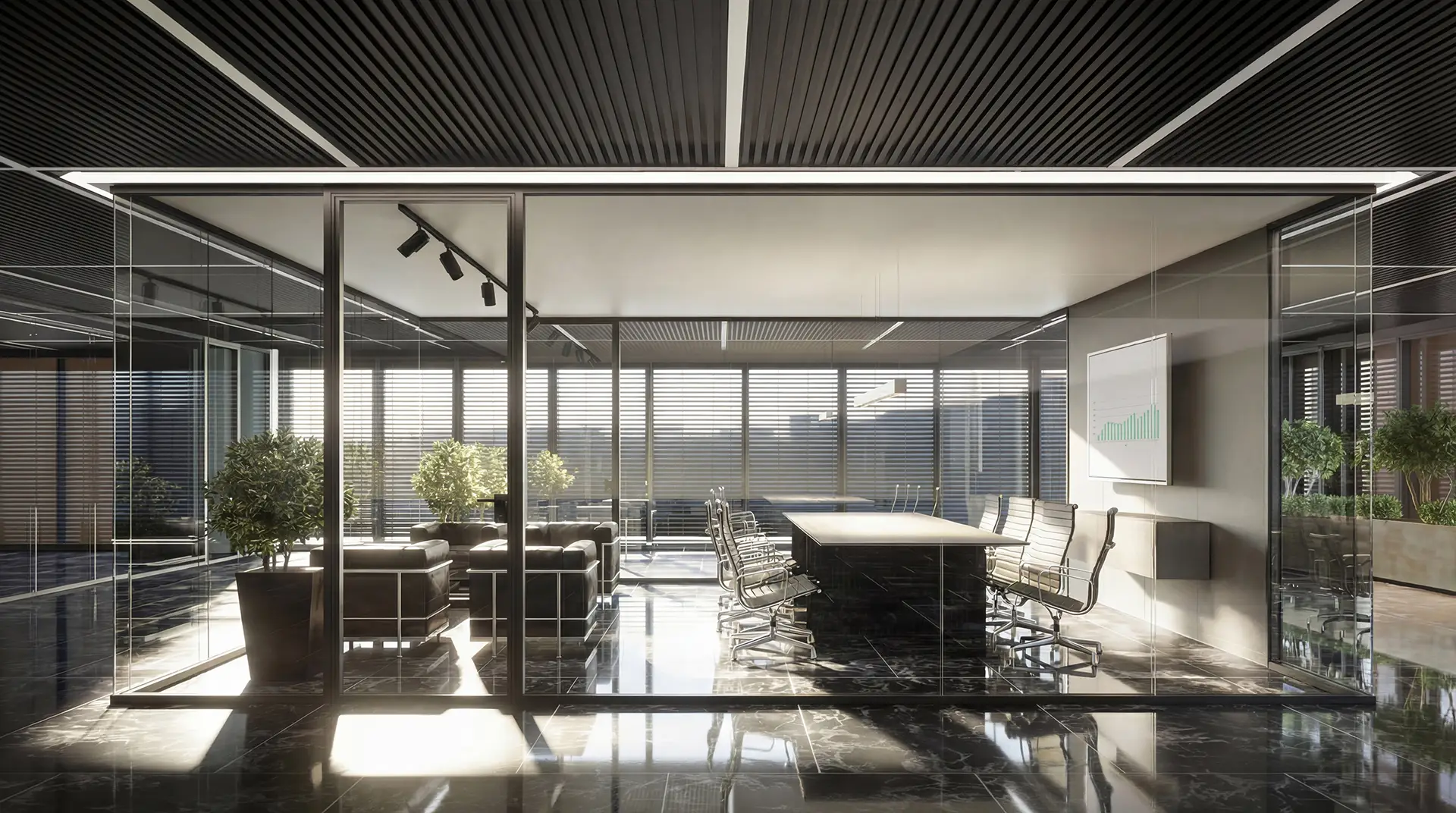 Grazie alla doppia lastra di vetro stratificato e alla struttura in alluminio ad alta precisione, la nuova parete mobile combina solidità, trasparenza e continuità visiva, creando un ambiente luminoso e al tempo stesso protetto: il pieno equilibrio tra comfort acustico e design minimale, per rispondere alle esigenze degli spazi professionali di nuova concezione.